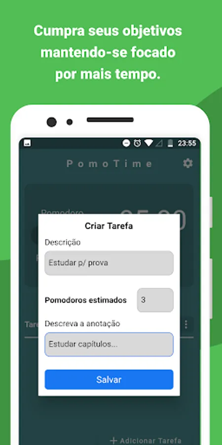 The PomoTime app allows you to: