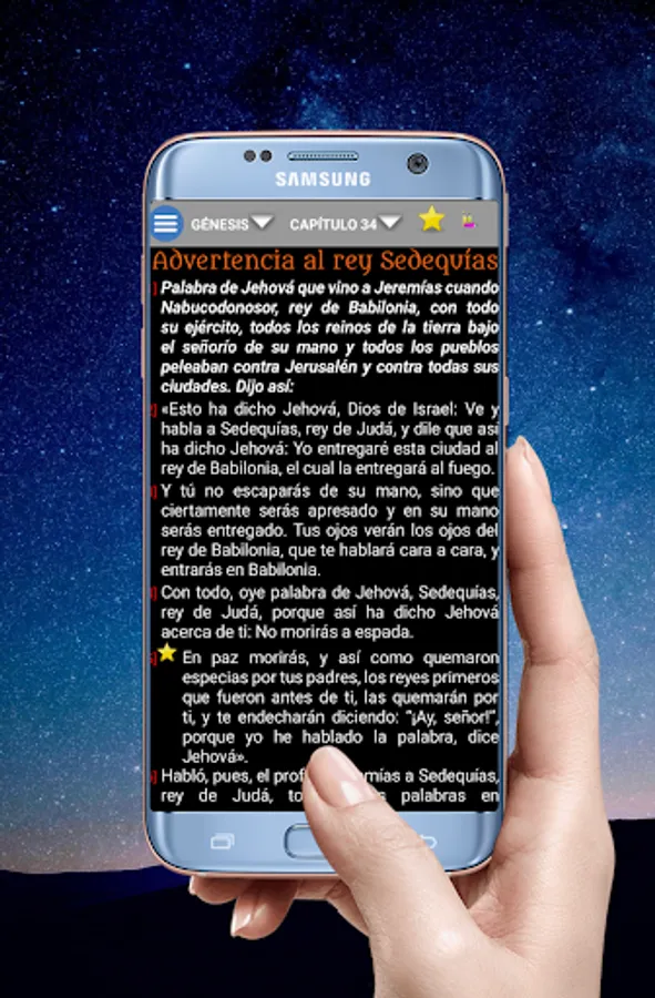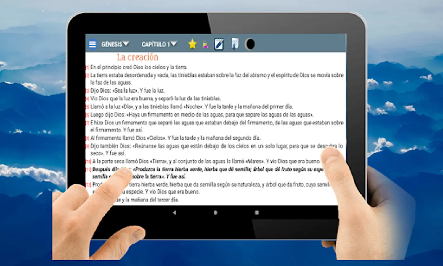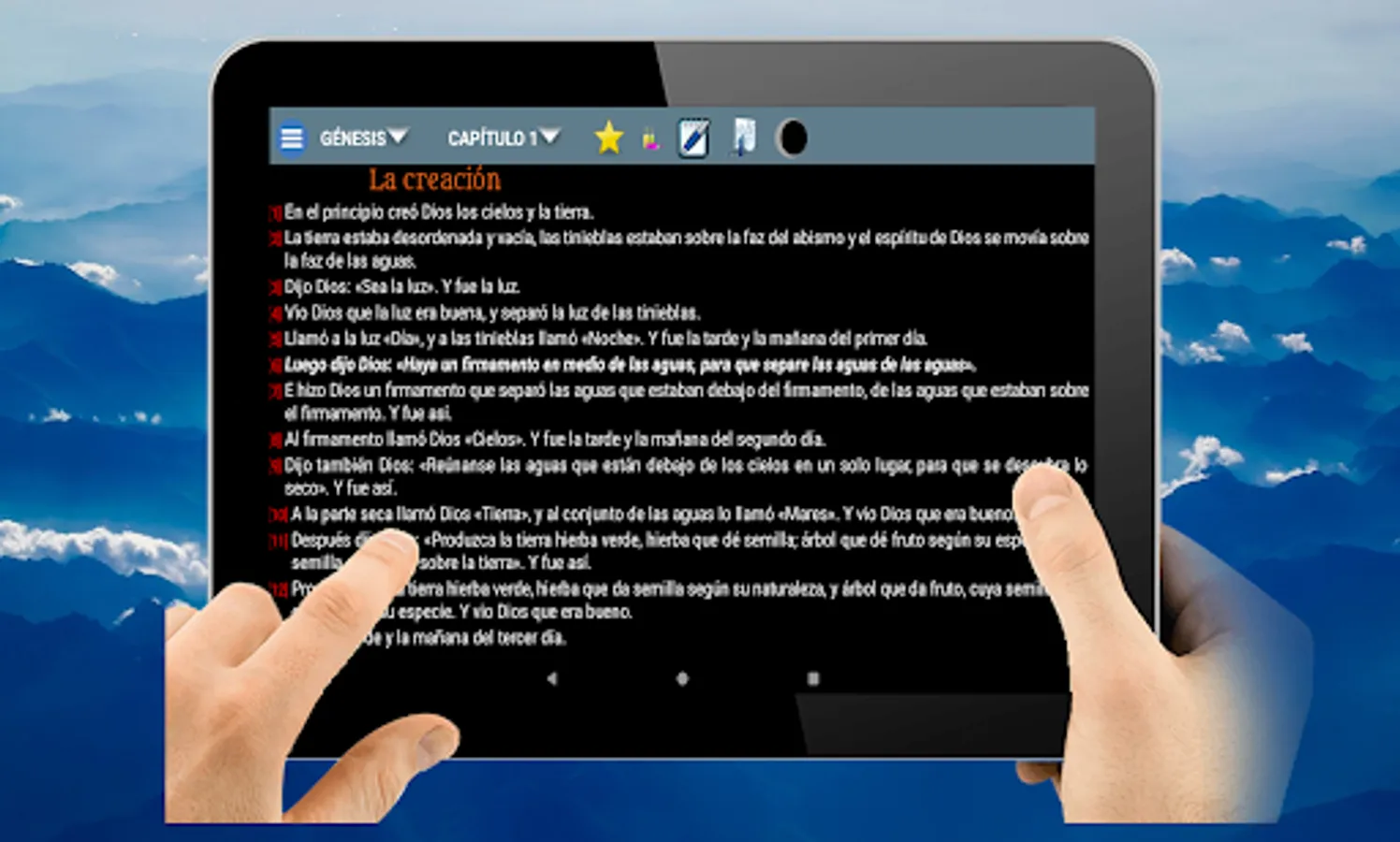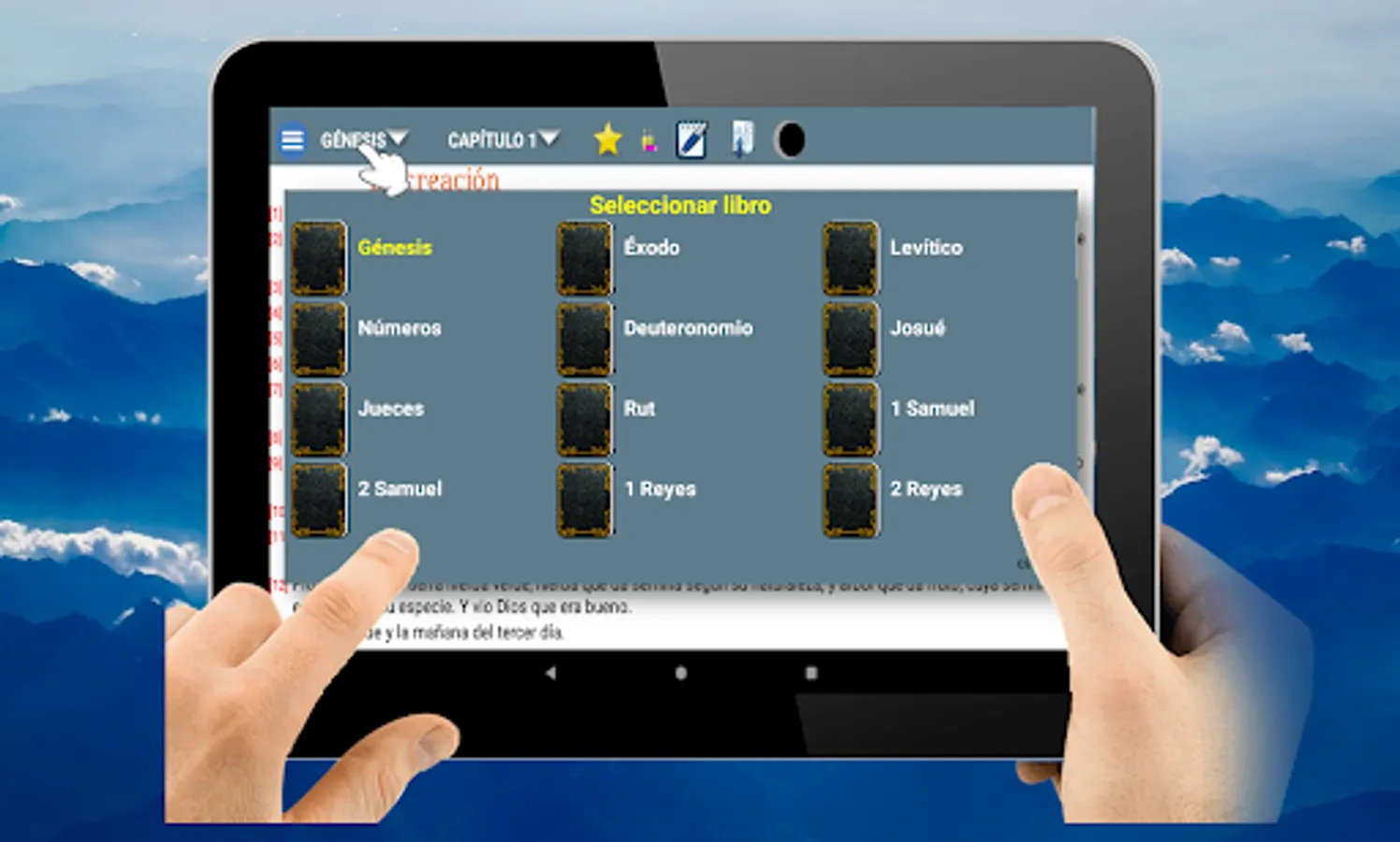 • You can click on the screen and in the lower part the name of the book and the chapter will appear, when you press it the list of books will appear and in the other the chapters that the selected book has.