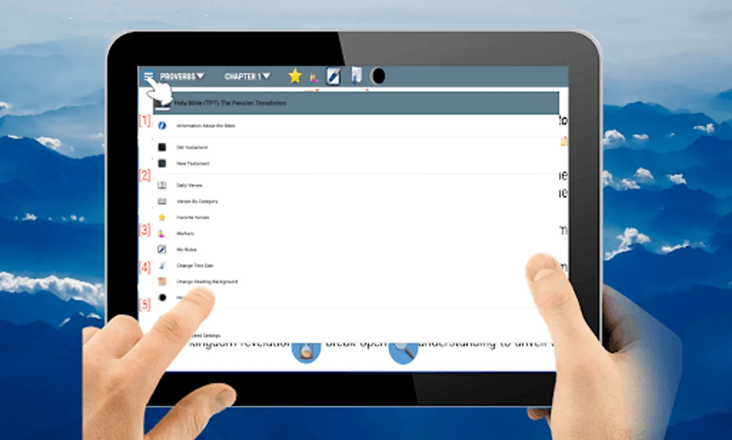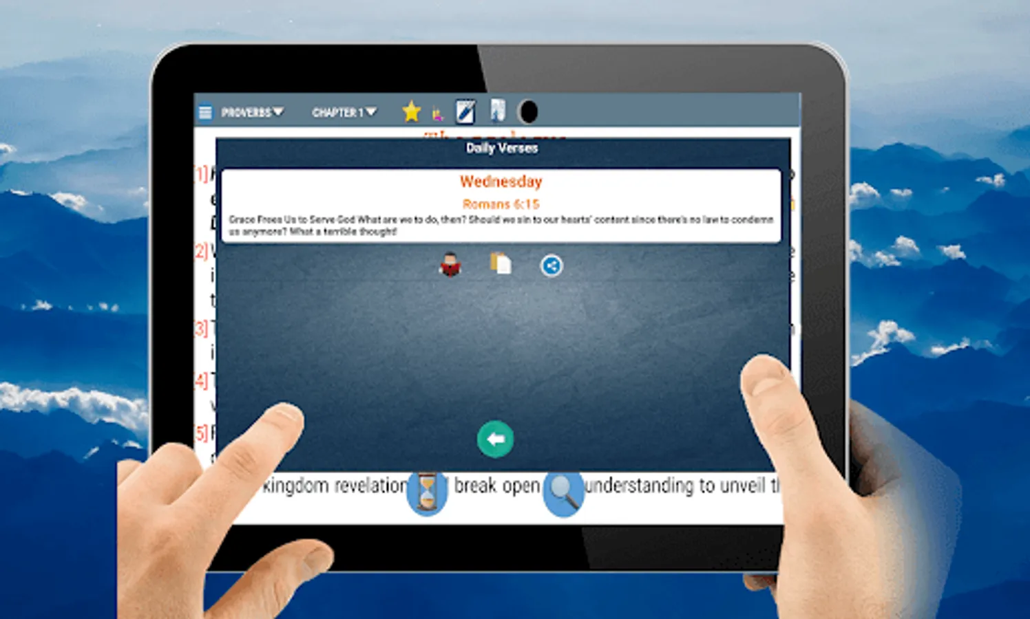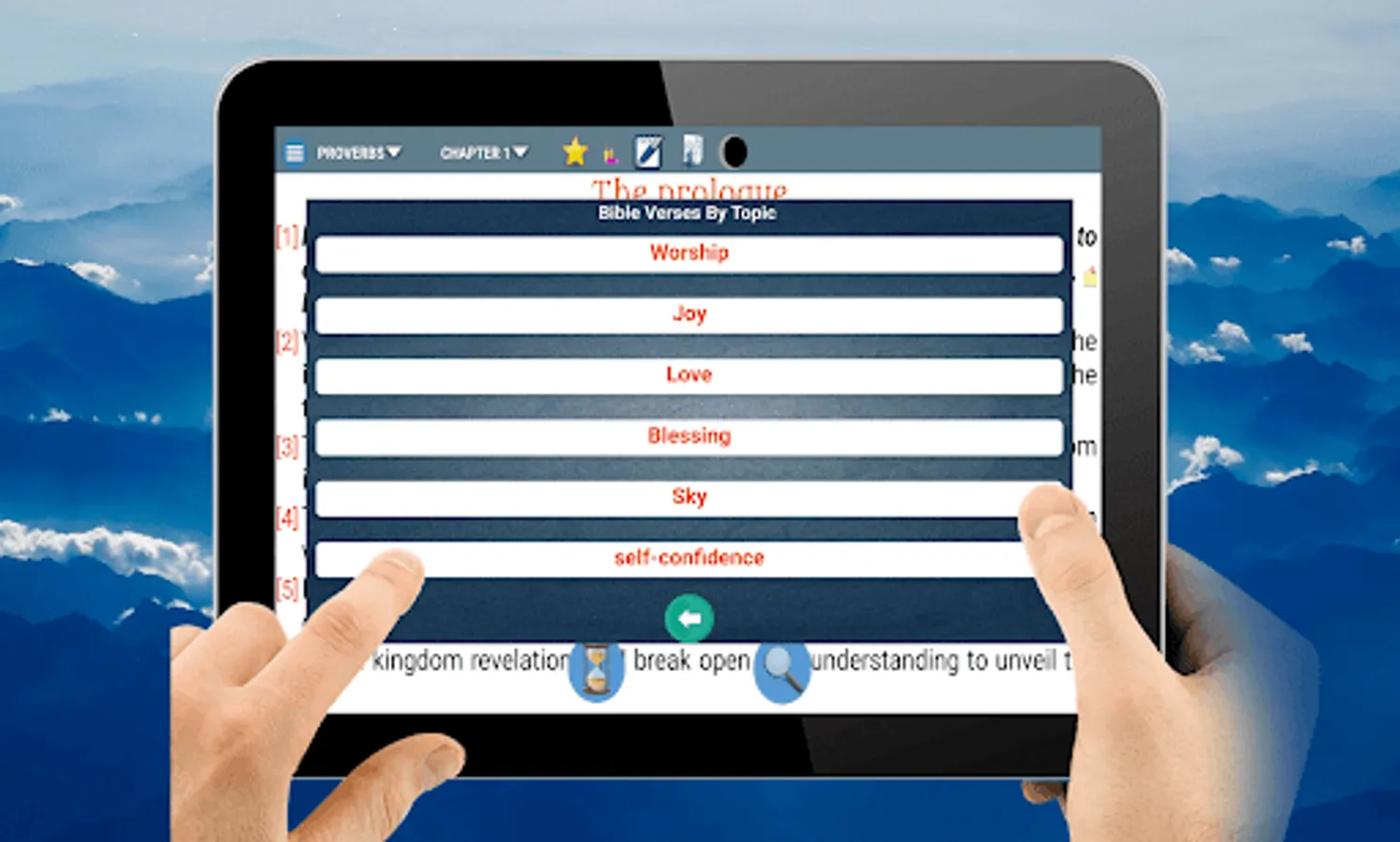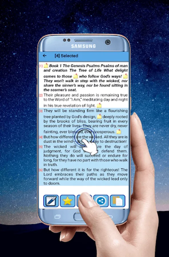 Characteristics of the application The application is easy to use and allows you to listen and read the sacred scriptures quickly and easily, without the need of an internet connection. You can pause the playback of the chapter and listen to it where you left it again and choose the verse wherever you start when reading. The audio playback performed by the application is using the Voice Synthesizer that contains the cellular device or tablet. If the device does not support this functionality, the program will indicate it. Access to the options menu quickly and sensibly. Option to change the text size. Change of reading background of the book. Access to favorite chapters and verses. Search for words in books, chapters and verses. Night mode to facilitate reading and decrease the light of the screen. Notification Daily a verse. You can click on the screen and the lower part will show the name of the book and the chapter, when pressed, the list of books will appear and in the other the chapters that the selected book has. You can select one or several verses of a chapter and mark as a favorite you can also share with your friends the verses in the different social networks. By clicking on the favorite clip, you will see the verses that you marked for quick access. The Search menu will allow you to place a word in a text field and search the entire bible, in the old or new testament. If you specify the search range it may take less time to find matches, but if you select the whole bible it will take longer to Find the results. The configuration will allow you to change the size of the letters and the reading mode (Night and day).