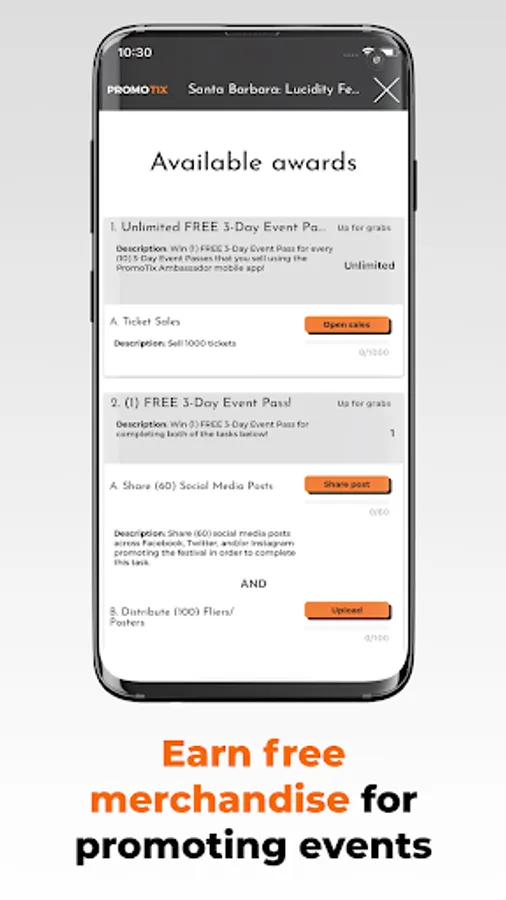 PromoTix Ambassador is a mobile app for music enthusiasts to earn free tickets to music festivals, concerts, and music venues, as well as cash, artist merchandise and other rewards for helping event creators promote upcoming shows.