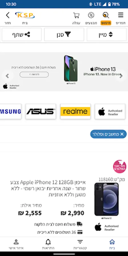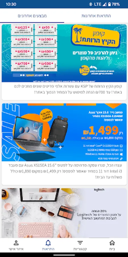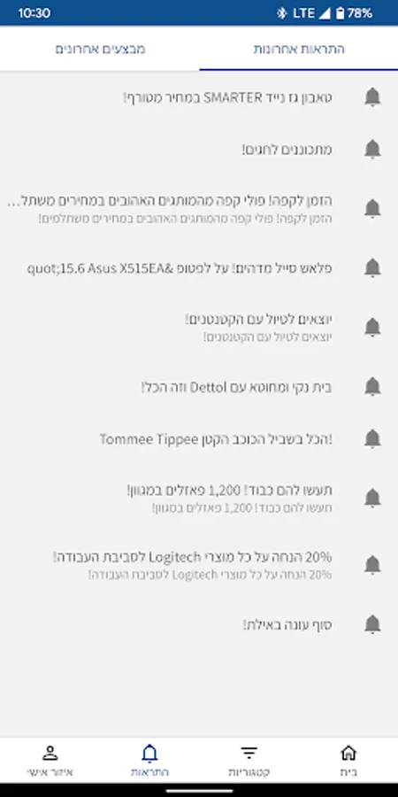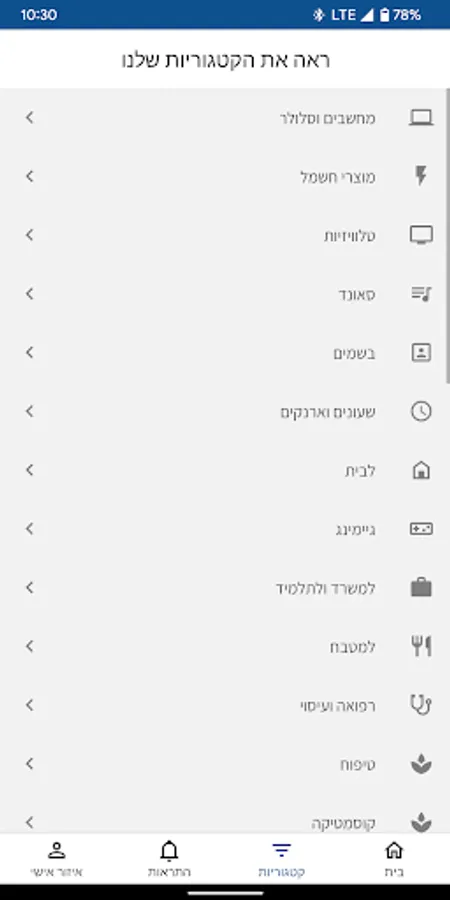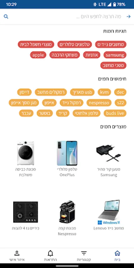 In the app you can stay updated on all the hot products and receive updates about specials in the official shopping app of the largest shopping site in Israel.