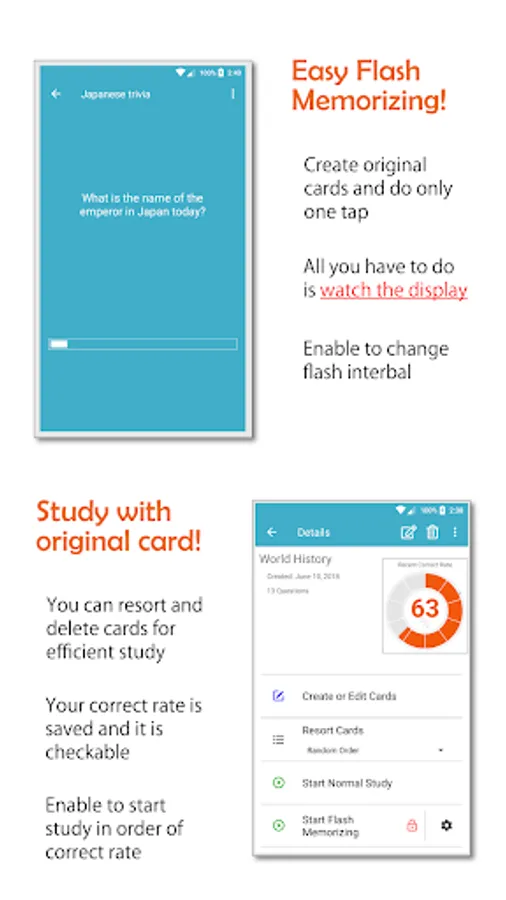 · Easy and quick study with flash memorization function