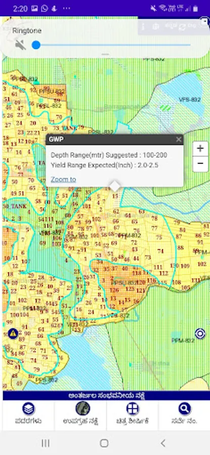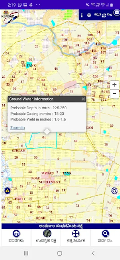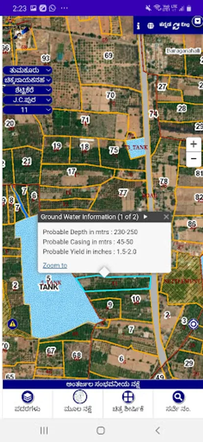 Mobile app facilitates the department as well citizen to understand, visualize the groundwater prospect with information like suggested depth range and expected yield for the particular area for the entire state in 1:50,000 scale. Further this app also facilitates to under stand as well visualize the groundwater prospect map prepared in 1:10,000 scale, Sy. No wise information’s like probable depth, casing and yield pertaining to JC Pura Grampanchayath only.
