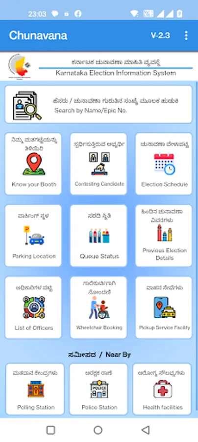 Chunavana, a mobile App provides information related to Karnataka Assembly Elections 2023 viz., users polling booth location, navigation to polling booth, candidate information, officers’ details and nearby emergency facilities. Know your booth based on current location.