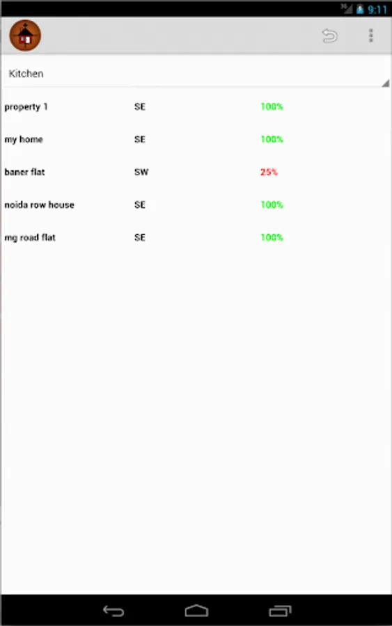 5. Compare different properties from Vastu perspective. You can compare a single room e.g. kitchen, as well as the entire flat, for all saved properties. The percentage score indicates level of Vastu compliancy.