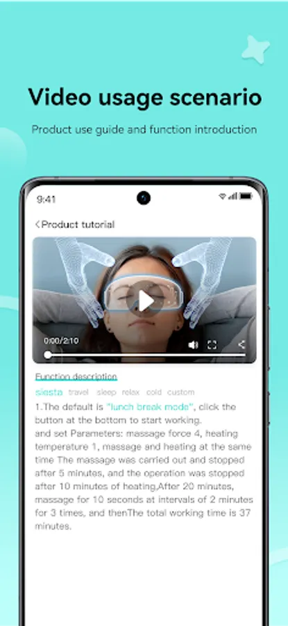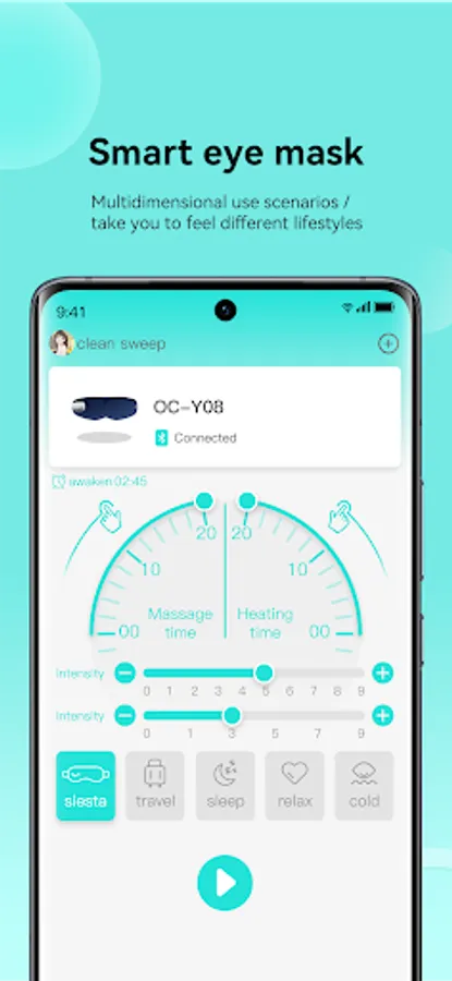 Provide a convenient operation method for the use and management of smart bluetooth eye masks. After binding the user's bluetooth eye mask device, data synchronization can be realized, and data such as lunch break mode, sleep mode, travel mode, relaxation mode, and cold compress mode can be monitored;