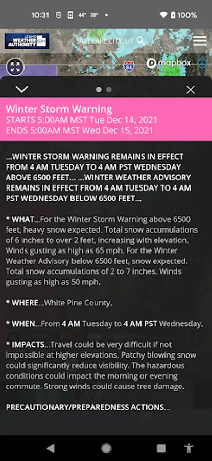 * Severe weather alerts from the National Weather Service