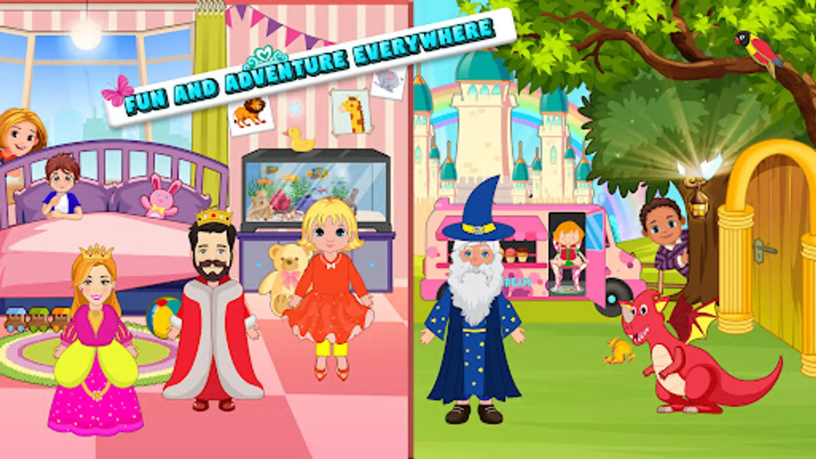 It is great fun for all ages in this magical fairy tale world .Everyone remembers playing family games with dolls in tiny dollhouses. It is so fun to create your own family life story about those dolls in the digital dollhouses of my fairy princess magic games and role play as a mom, dad or as any other character. Now the any one can play in this imaginative dream house full of fun and allow to create their own doll stories and own playhouse rules. Play dress up games and try different costumes.