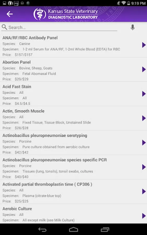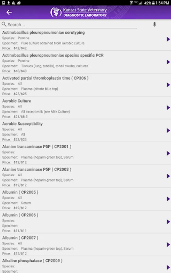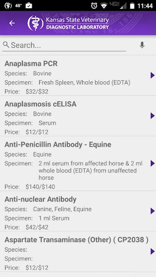Browse or search all available tests offered through the KSVDL. Review estimated turnaround times, sample collection instructions, shipping guidelines, prices, and much more.