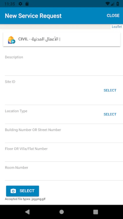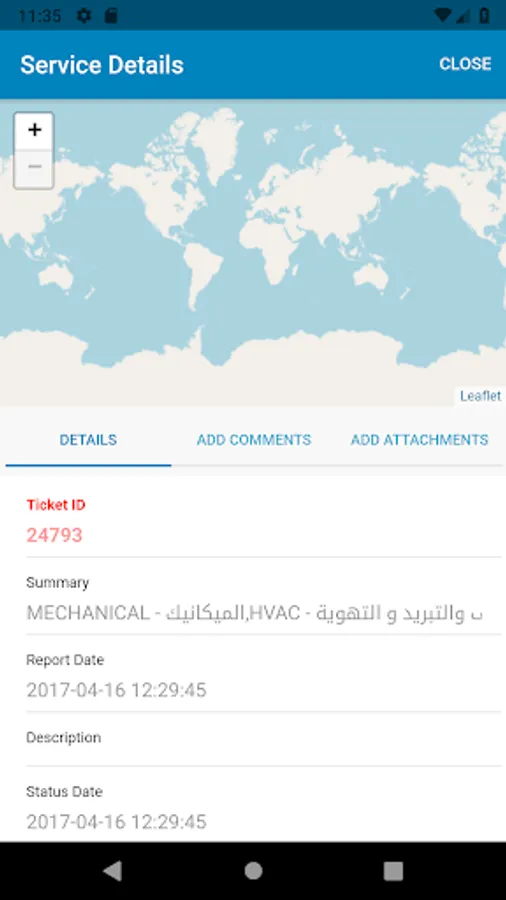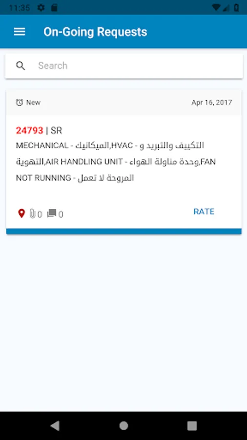Users can write a description of the request, and enter a location for the request. They can also view the requests they created that are not currently resolved so they can follow up on those requests.