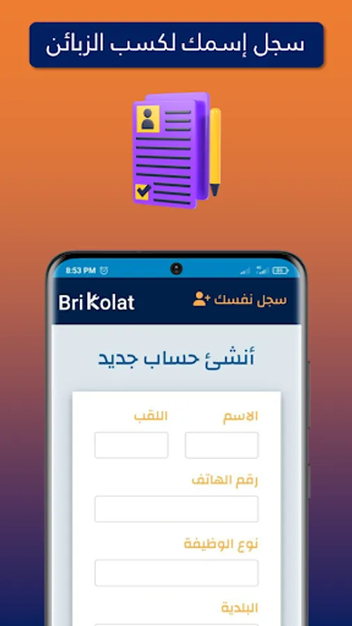 سواء كنت تبحث عن مساعدة في إصلاح أعطال منزلية أو تخطيط لتركيب جديد، فإن تطبيق "بريكولات" هو الحل المثالي لاحتياجاتك. قم بتحميل التطبيق الآن واستمتع بسهولة الوصول إلى الخدمات المهنية على بُعد نقرة واحدة فقط!