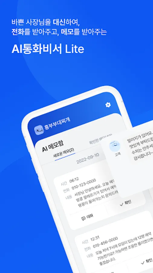 AI Call Assistant Lite is a service provided to small business owners, and when it is difficult to answer a call, AI takes the call instead of listening to the customer's business and leaving a message to help prevent missed calls.