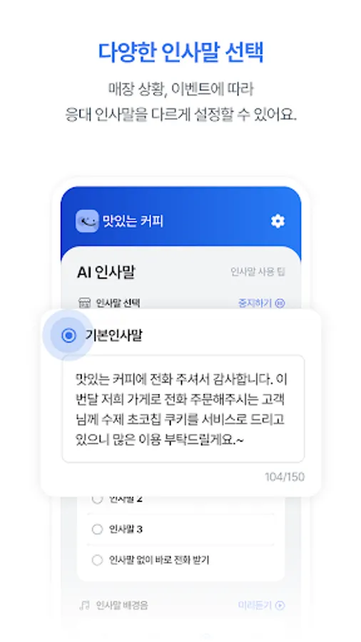 In addition, you can freely deliver real-time store status or promotion information to customers at the same time as the call is connected through the greeting setting.