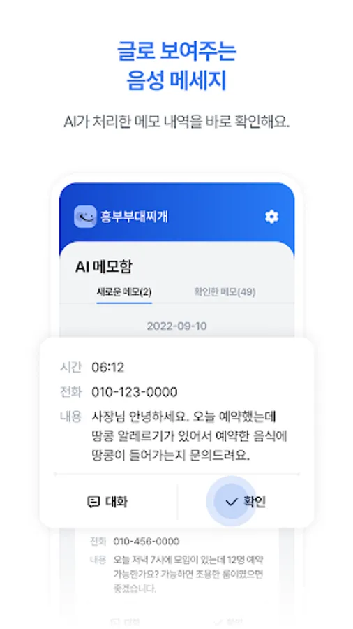 - When you are out of office or busy with work, turn off the store phone temporarily and AI takes over the phone, writes down the customer's business and delivers it to the app