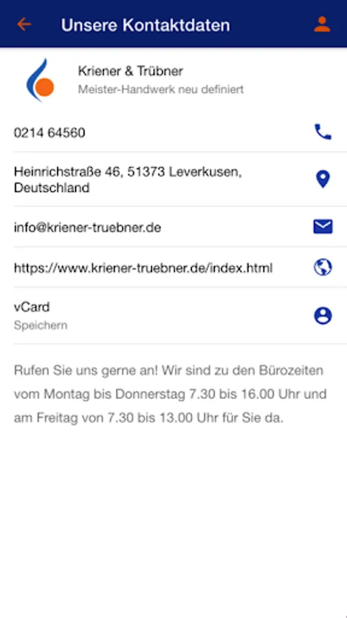 The service app from Kriener & Trübner from Leverkusen. For their simple and perfect service for everything to do with bathrooms, heating and sanitary in your apartment, in your house. So you always have a direct line to our employees and have full access to important information. For emergency services, inquiries, appointments. We are here for you!
