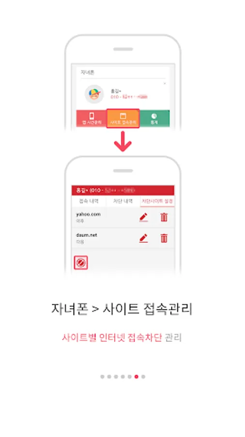 * Child phone management: Check the usage time of the sites visited by the child and the apps used by the parent phone and manage the usage time by time zone (provided a smartphone management function for two children)