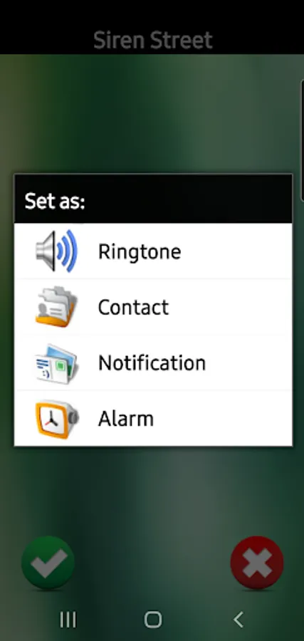 To use, simply press any of the many loud and clear choices to preview. If you would like to save that choice, press the green check and then select either ringtone, alarm, notification, or contact. It's that simple!
