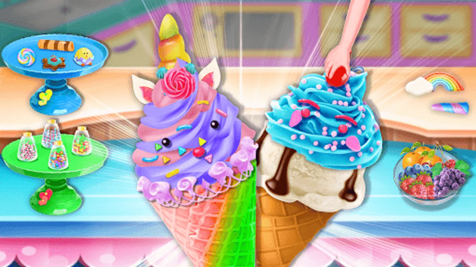 Ice cream is an all-time favorite for everyone in any season. There are many varieties of delicious ice-cream like ice rolls, ice scoops, ice marshmallows, ice popsicle, rainbow Ice Cream, and much more. No one knows how to make ice cream. Here you have make ice cream game easy to give girls knowledge about tasty ice cream maker. These cooking dessert games are exciting and full of entertainment for beautiful girls to play their roles in the kitchen ice cream cone.