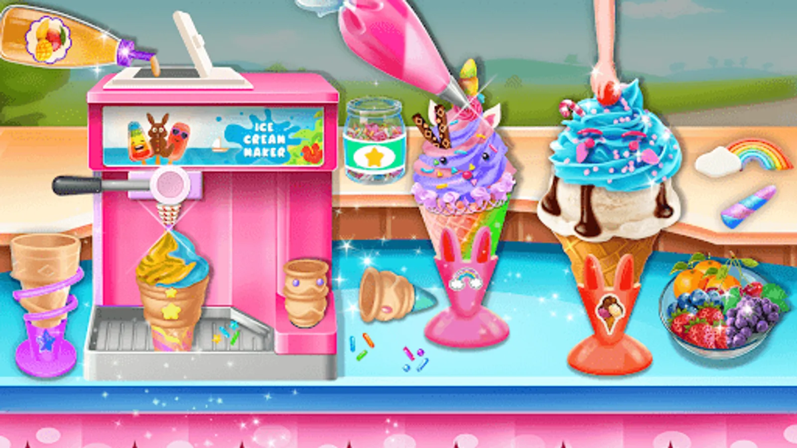 Ice Cream Maker Shop Girl Game simulates an ice-cream shop where you are the attendant and owner. Gameplay is a simple swipe interface: you need to get an order from the customer's favorite ice cream and start making tasty ice cream. Now adding ingredients according to customer request. Make sure your order is right and accurate to fulfill their requirements. If are you finding the delicious ice cream game then you are at the right place. Here is your ice cream shop, and your clients are happy by serving their best-loved ice creams. The top-selling ice-cream are chocolate, strawberry, and vanilla in the ice cone maker.