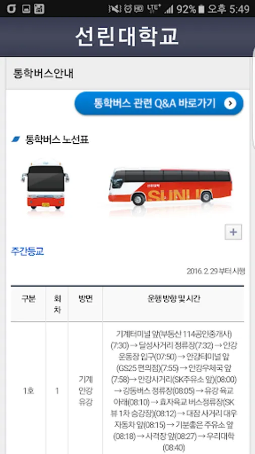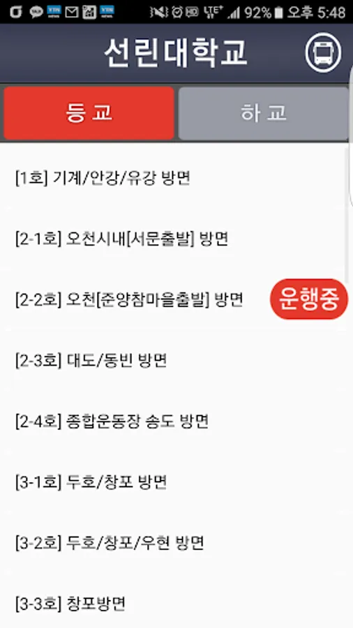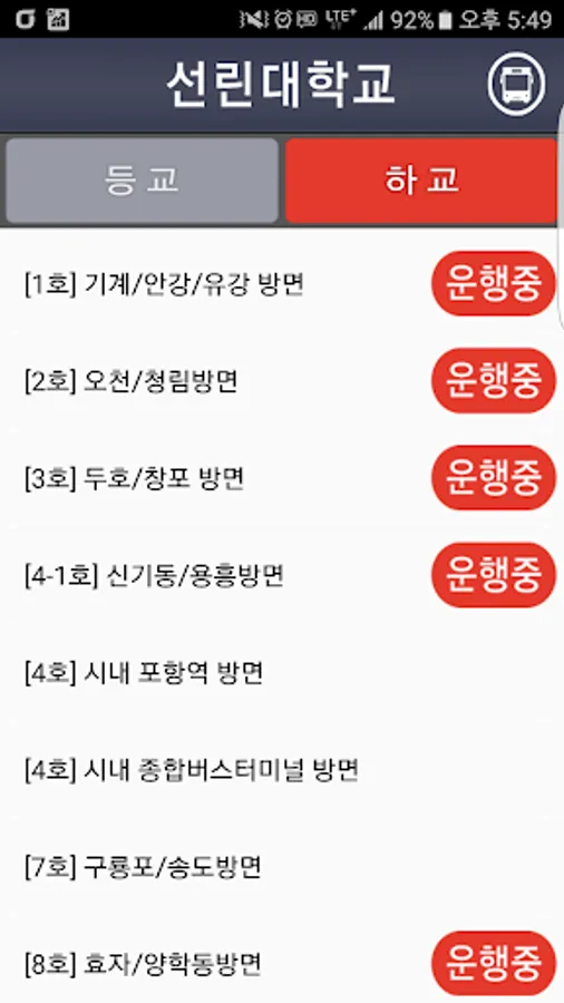 School / school, you can see each route by bus status, people riding the bus, you can see various information such as current location, bus information.