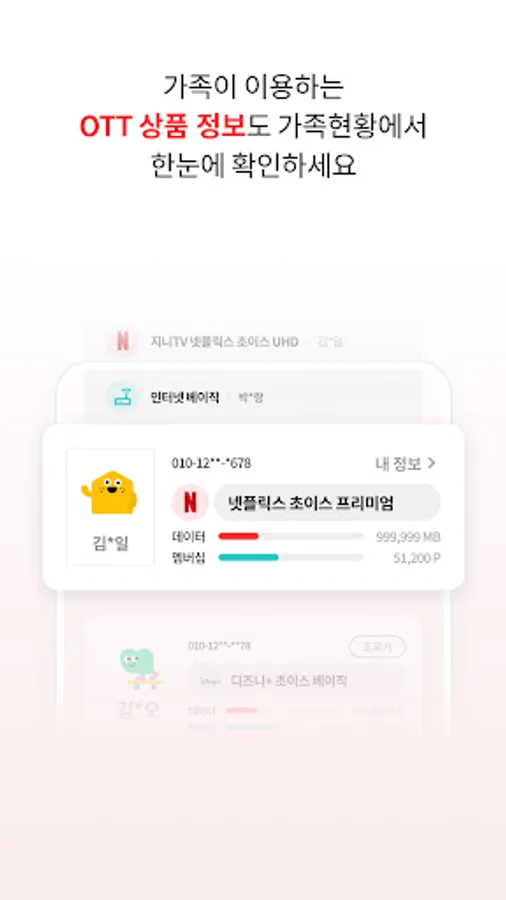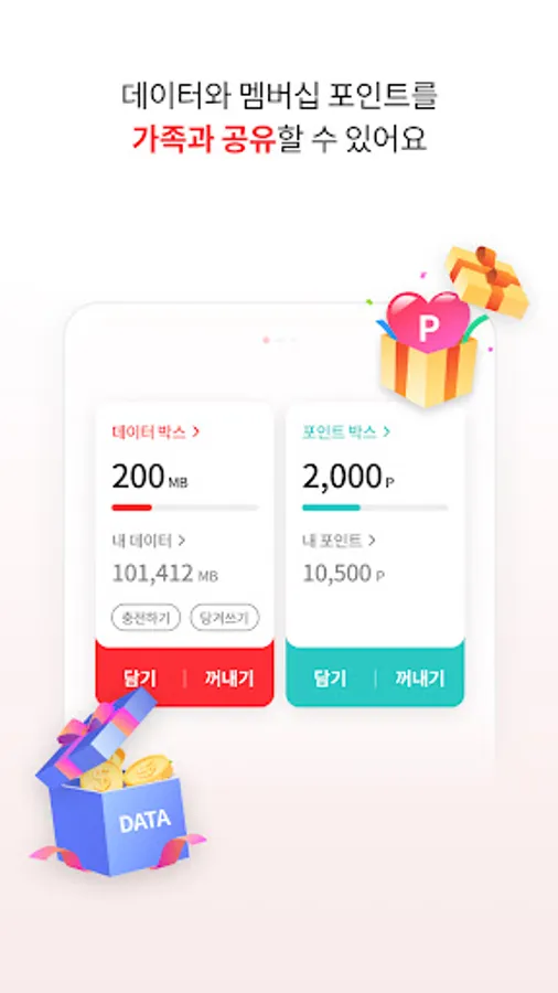 You can share data and membership points with family members, and you can acquire additional data through missions. Free coupon benefits that can be used by the whole family are a bonus.