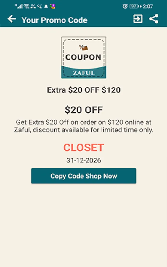 Expired Coupon Deleted as soon as possible, if you find any expired coupon than comment us.