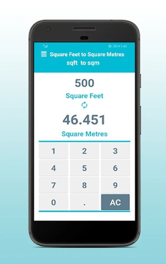 Simple and Fast conversion for Square Feet to Square Meters calculator, just click on the NUMBER button you Get quick answer. ft² to m² Area conversion is Super fast app designed by KTAppsStore, ads not disturb you during Square Feet to Square Meters conversion. So it is user friendly app.