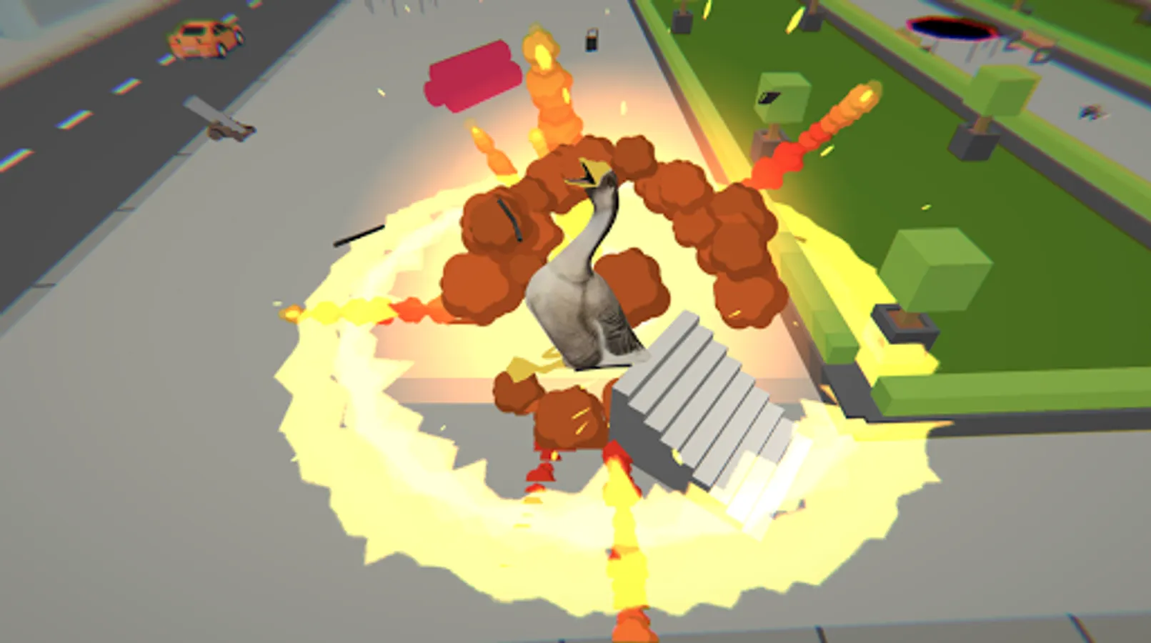 Get ready to play the best goose rampage game in an untitled city! This is the perfect ragdoll game experience you can have on your mobile. Police and the civilians will try to stop the goose, but he can defeat them in a really fun and horrible way. In this game, you can do anything that comes to your head - explode any vehicle, use trampolines or even shoot the goose from a cannon!