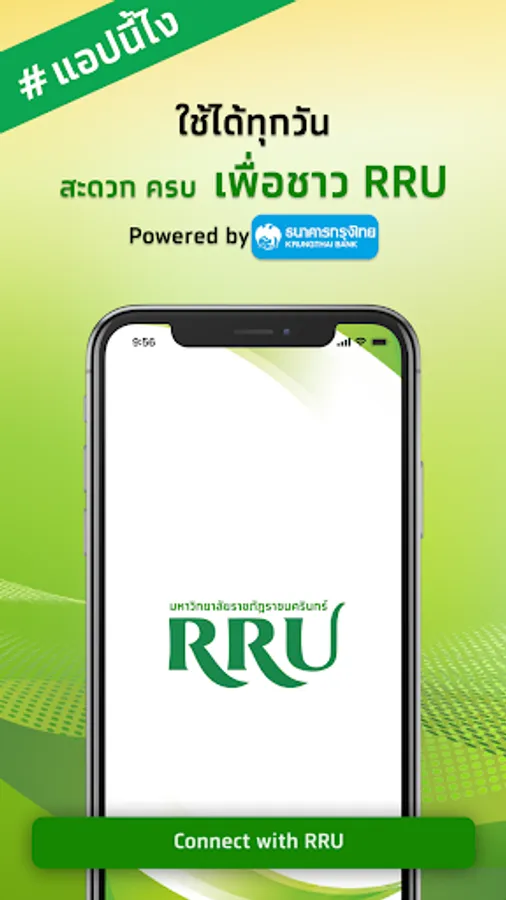 Krung Thai Bank together with Rajabhat Rajanagarindra University to develop RRU APP to be a One Stop Service that responds to every lifestyle in the university. For students, teachers, staff, including alumni Do not miss any important news and events of the university.