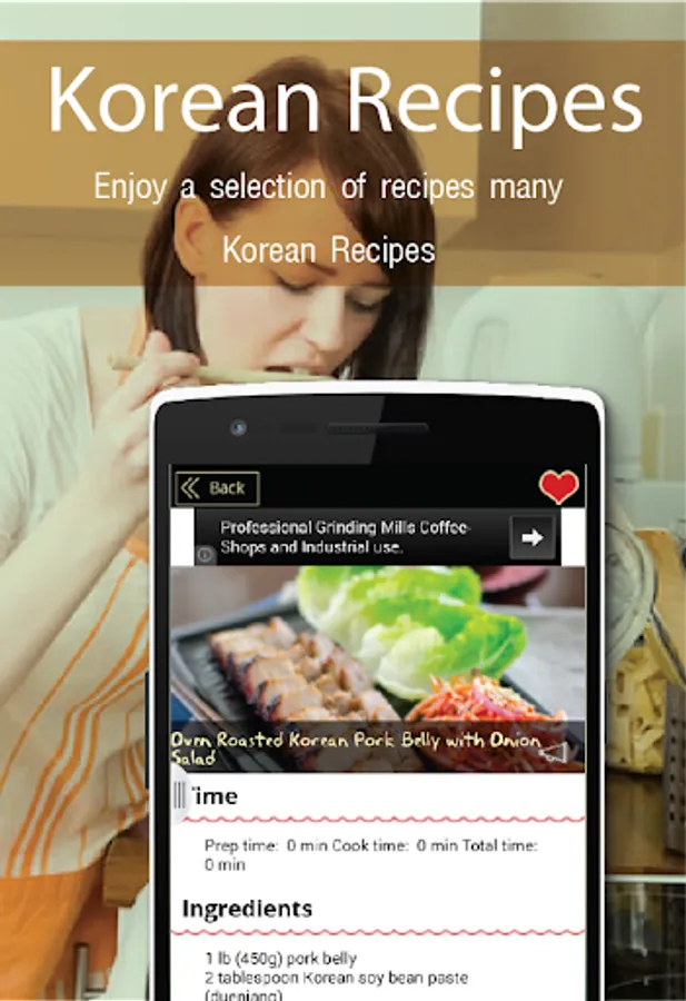 Enjoy the taste of Korean with our recipe app. Very tasty spicy Korean recipes which makes our evenings even more spicier.
