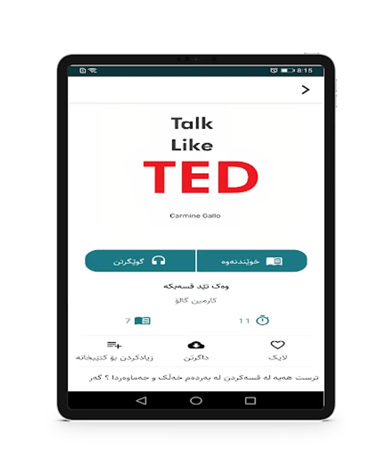 بەهۆی جەنجاڵی و سەرقاڵی زۆرمان بە کار و باری ڕۆژانەوە هەمیشە خوێندنەوەی ڕۆژانەمان دوادەخەین بەمەش زۆرجار لە مانگێکدا تەنها کتێبێک یاخود کەمتر تەواو دەکەین ، ئەمەش دەبێتە هۆی بێبەشبوونمان لە هەزاران کتێبی ناوازە ، بە هۆی نەبوونی کات و زۆری نمارەی کتێبەکان ئەمەش پێویستی بە چارەسەرێکی بنەڕەتییە و تاکە چارەسەری گونجاویش بۆ سوودمەند بوون لە هەموو کتێبەکان لەکەمترین کاتدا خوێندنەوە و گوێگرتنە لە پوختەی کتێبەکان ، کە لەلایەن ستافی پسپۆڕ و شارەزاوە دوای چەندین جار خوێندنەوە و وردبونەوە لە کتێبەکان بیرۆکە سەرەکیەکانی دەرهێنراوە و وەرگێڕدراونەتە سەر زمانی شیرینی کوردی و خراونەتە بەردەستی خوێنەری کوردزمان .