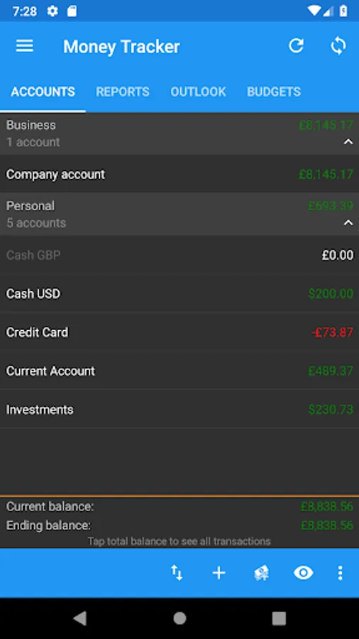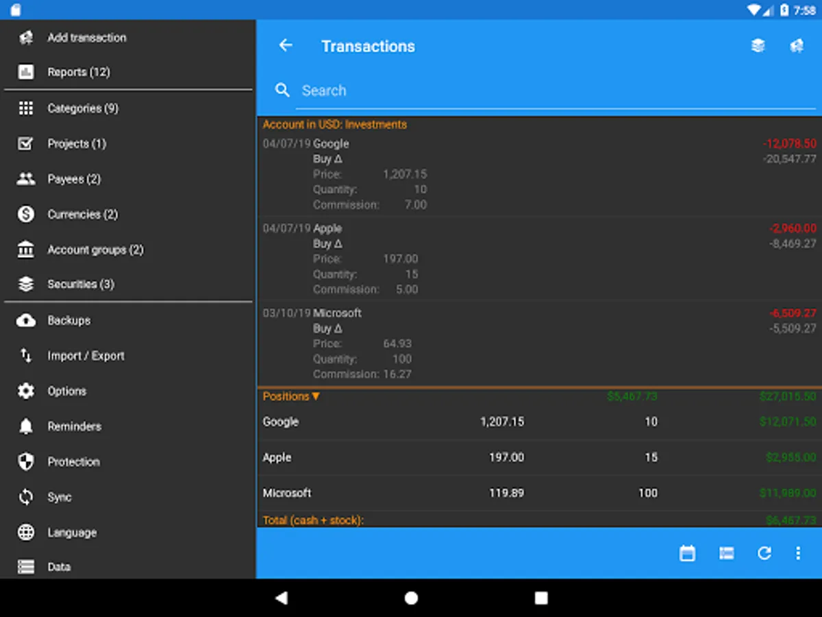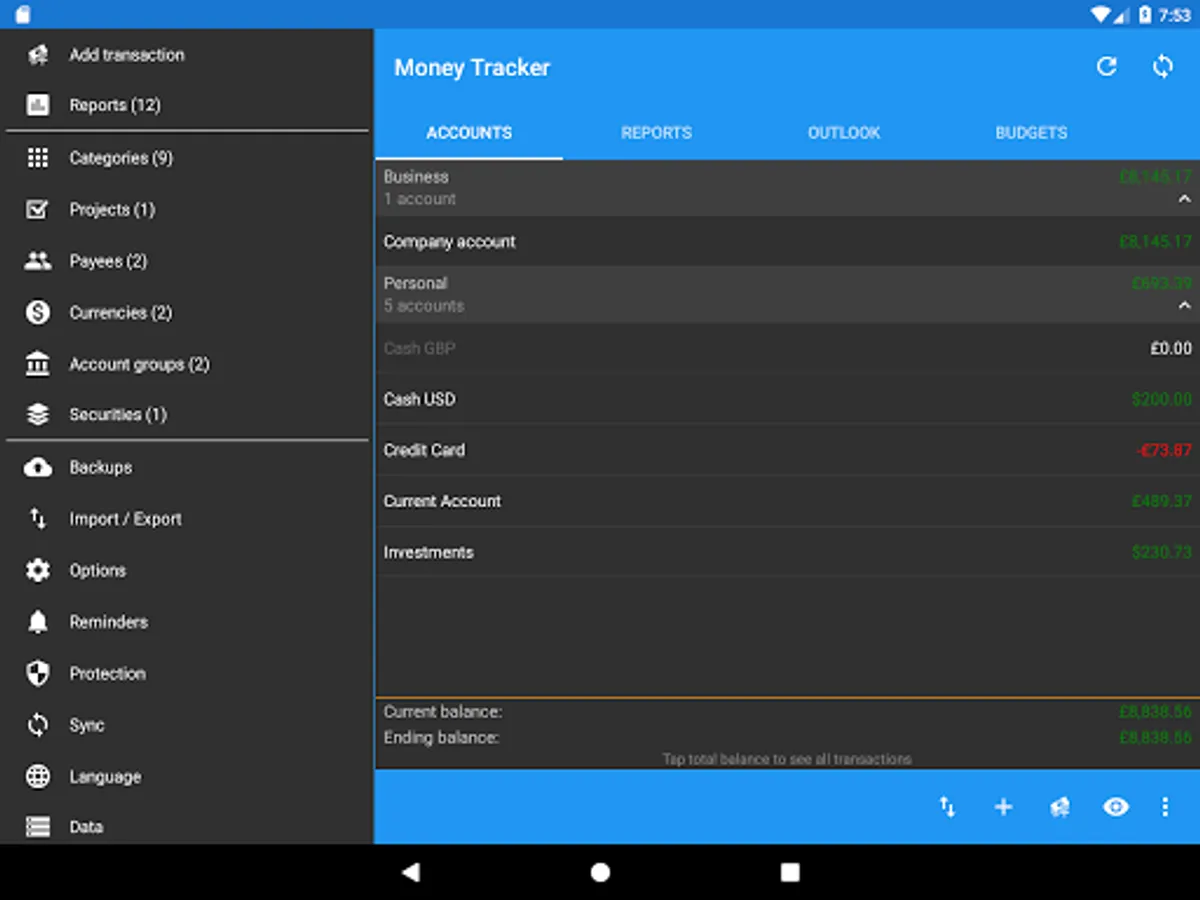 Advanced money manager - seamless tracking of cash accounts and investment portfolios.