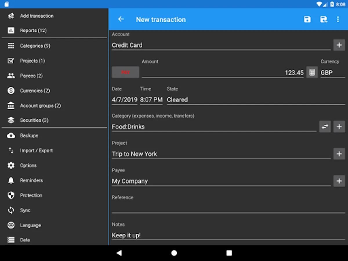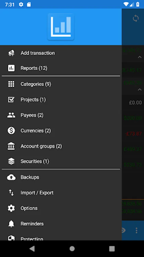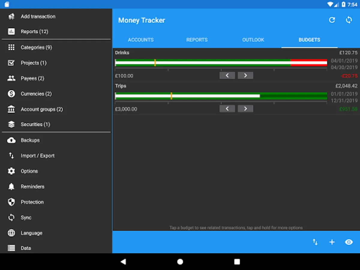● Free version has ads and limited to 2 currencies, 10 accounts and 40 categories. All ads and limits can be removed via in-app purchase.