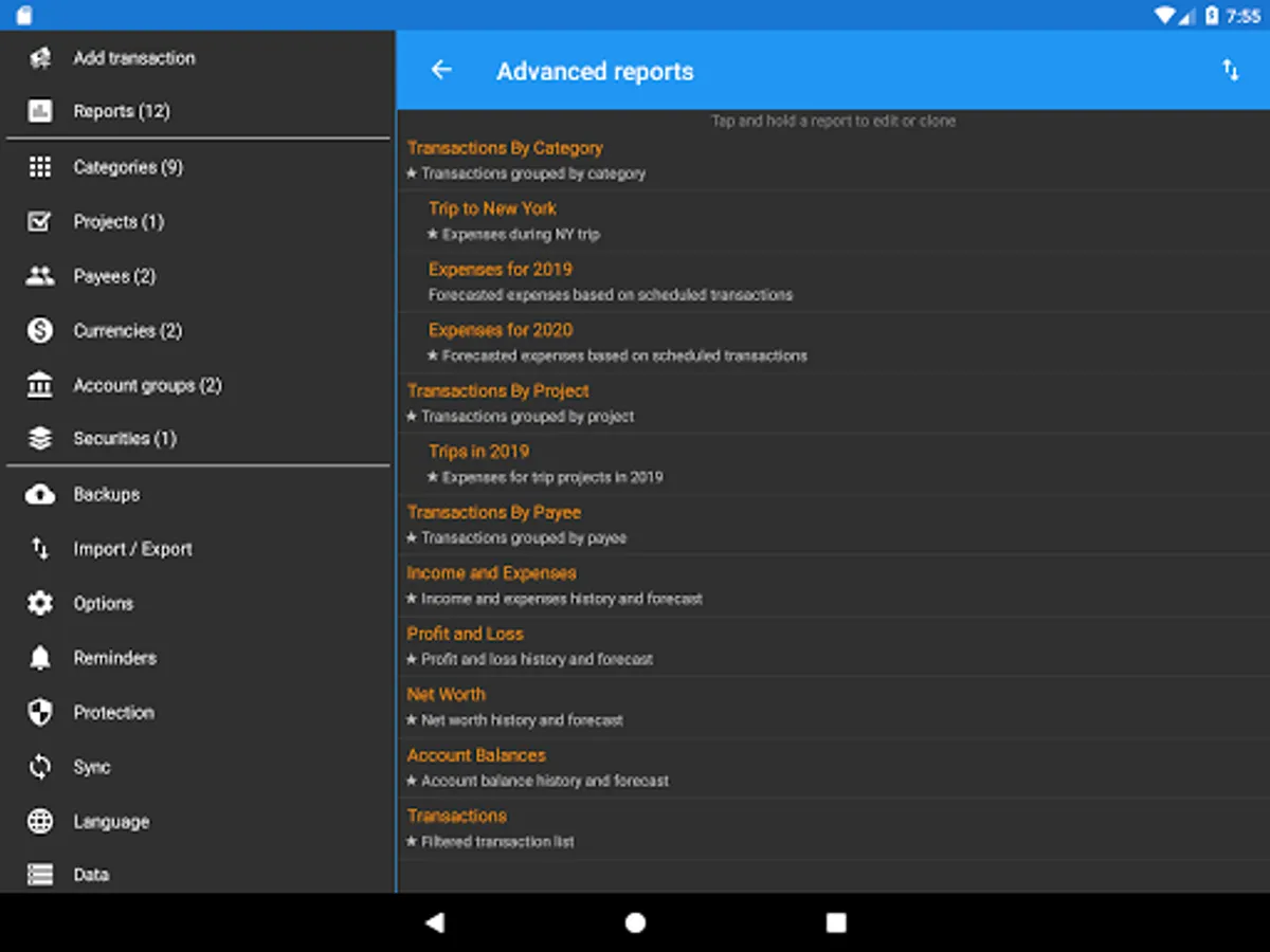 Simple intuitive interface, flexible cloneable reports, online exchange rates and stock quotes, excellent performance with decades of data.