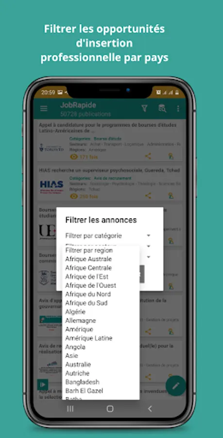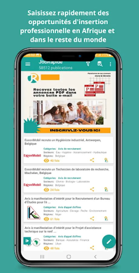 This Mobile Application offers professional integration opportunities everywhere in Africa and in the rest of the world.