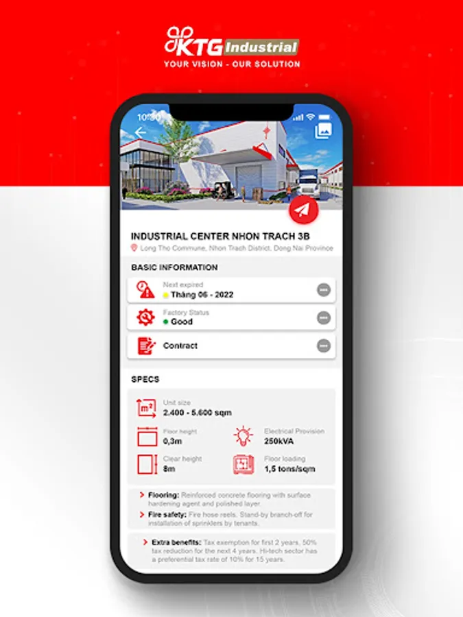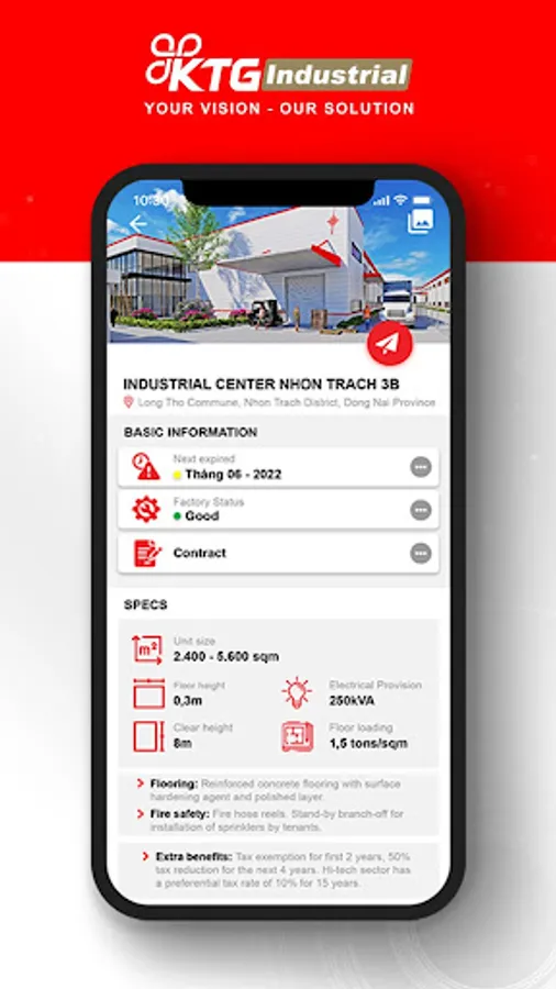 - Factory/warehouse for leasing : view on products with location, image, master plan, unit size