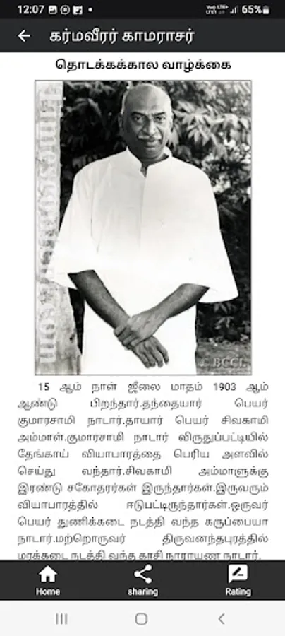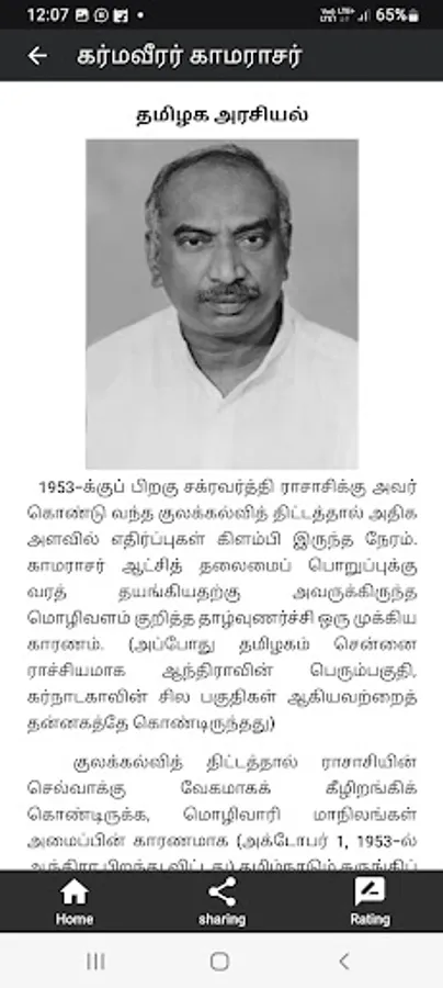 Kumaraswami Kamaraj, popularly known as Kamarajar was an Indian independence activist and politician who served as the Chief Minister of Madras State (Tamil Nadu) from 13 April 1954 to 2 October 1963. He was the founder and the president of the Indian National Congress (Organisation), widely acknowledged as the Kingmaker in Indian politics during the 1960s. He also served as the president of the Indian National Congress for two terms i.e. four years between 1964–1967 and was responsible for the elevation of Lal Bahadur Shastri to the position of Prime Minister of India after Nehru's death and Indira Gandhi after Shastri's death. He was the Member of Parliament, Lok Sabha during 1952–1954 and 1969–1975. He was known for his simplicity and integrity. He played a major role in developing the infrastructure of the Madras state and worked to improve the quality of life of the needy and the disadvantaged.
