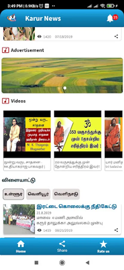 Get all the latest local updates in your regional language. The app is currently available in Tamil in Karur District. Stay updated on all the local happenings from in and around our City Receive daily updates on politics, entertainment updates, updates on crimes, technology, agriculture, as well as alerts on all the trending topics. Check your astrology & horoscope predictions, view devotional content & get international updates. Connect with your online community by sharing your views on topics or sharing local updates through this public app.