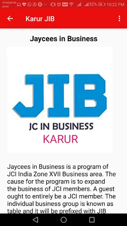 Jaycees in Business is a program of JCI India Zone XVII Business area. The cause for the program is to expand the business of JCI members. A guest ought to entirely be a JCI member. The individual business group is known as table and it will be prefixed with JIB pursued by the city name suffixed by variant 1.0, 2.0 and so on. Just a single person from each profession or classification is allowed to join a Table of JIB. Each table exists between 20-60 members. Each table is represented by Executive board that comprises of Chairman, Vice-Chairman, Secretary and Treasurer and two Directors. Executive Board of each table has the final authority identifying with classifications.
