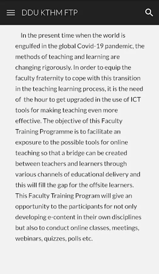 This Android App is Exclusively for Participants of One Week National Level Faculty Trainining Programme jointly Organised by Deen Dayal Upadhyaya College and K.T.H.M. College. Other Users should not download this app.