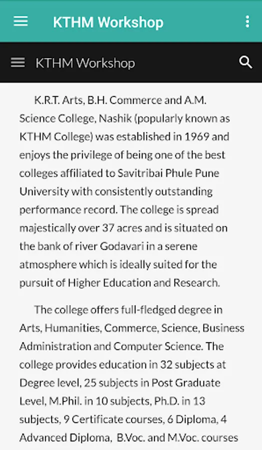This app is Exclusively for Participants of Three Days Workshop organised by NSS and SWO Departments of K.T.H.M. College, Nashik and H.R.D.C., S.P.P. University, Pune. Other Users should NOT download it.