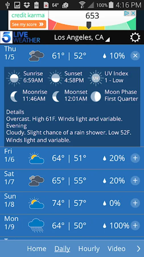 The KTLA Mobile Weather App includes:
