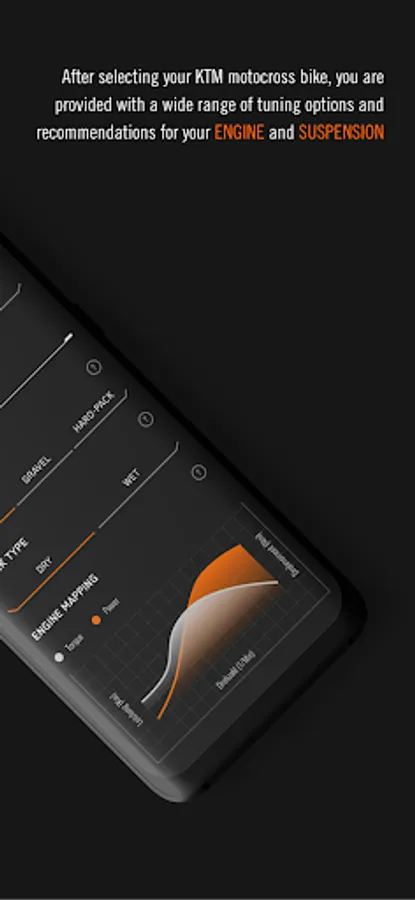 Being on top of your game and READY TO RACE could not be easier as the ENGINE feature allows customization of engine behavior, to suit personal rider preferences, while also giving valuable recommendations for inexperienced riders. Looking for the perfect feeling? The SUSPENSION feature recommends suspension settings based on skill level and track conditions but also assists the rider in evaluating and setting the correct suspension sag.