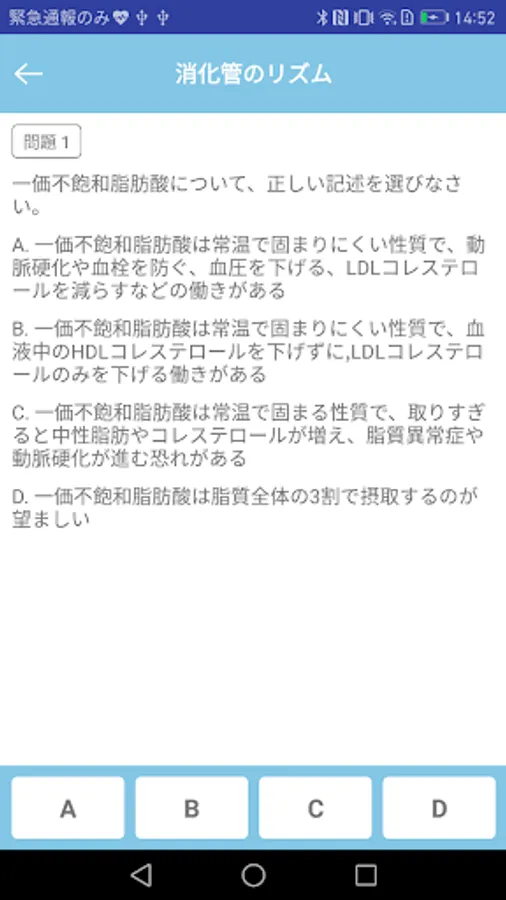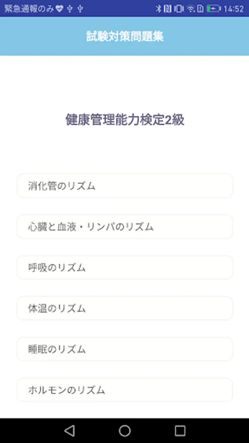 このアプリは特定非営利活動法人の日本成人病予防協会が開催する「健康管理能力検定 2級」の試験対策問題集です。