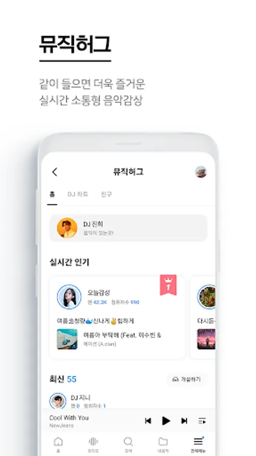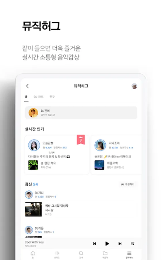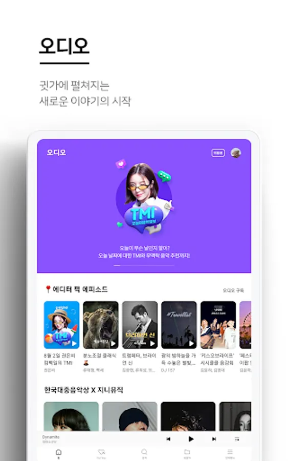 - Operating various contents such as today's selections selected by professional DJs every day, music on TV that introduces popular songs on broadcasts, and music by era