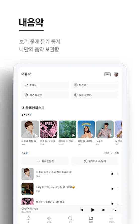 -You can manage your playlist, as well as recently listened to, frequently listened to, and favorite songs at once
