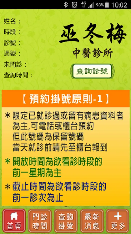 提供診號查詢、過號人數查詢、未看診人數查詢。