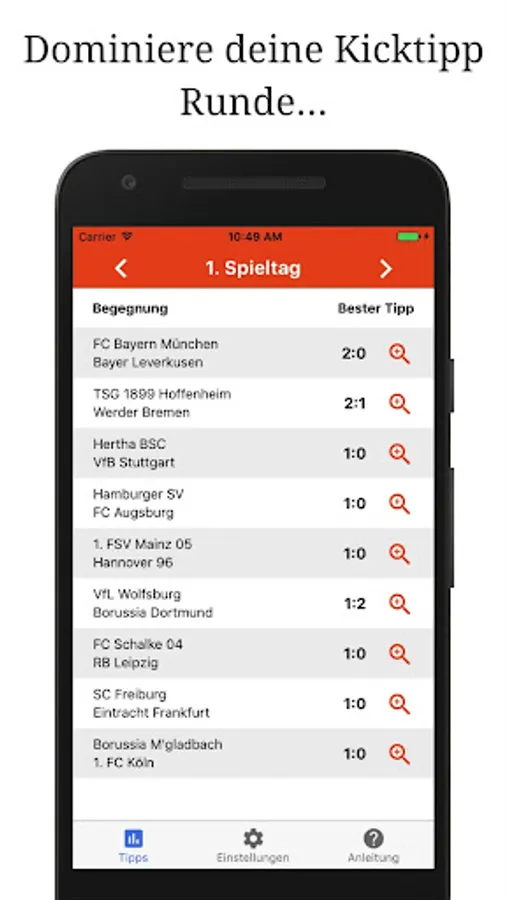 The Buli Oracle provides you with the best tips for your Kicktipp round based on statistical analysis. Stick to the tips and you will most likely end up at the top of your betting group!