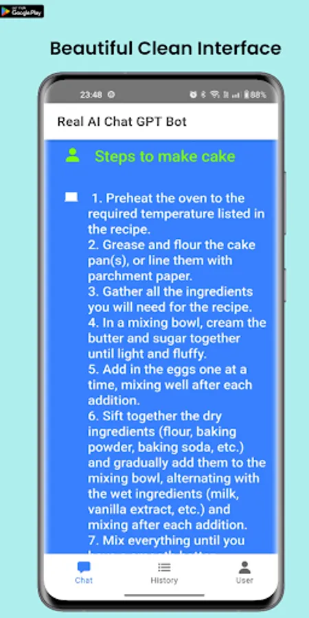The ChatGPT-powered "Real AI Chat GPT" app is an innovative and highly advanced conversational agent that is designed to provide users with an intelligent and personalized chat experience. Developed using the state-of-the-art GPT-3.5 architecture, this app is capable of understanding natural language and providing highly relevant responses that cater to the user's needs.