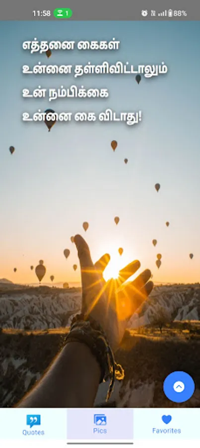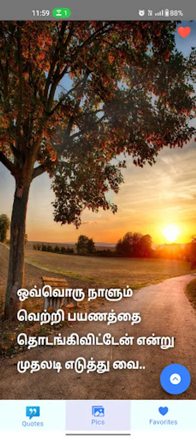 This app gives you motivational quotes in Tamil via text and picture. On a daily basis, you will also receive Tamil motivational quotes via notification. Both the picture quotes and text quotes are available in Tamil.